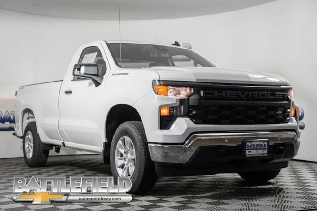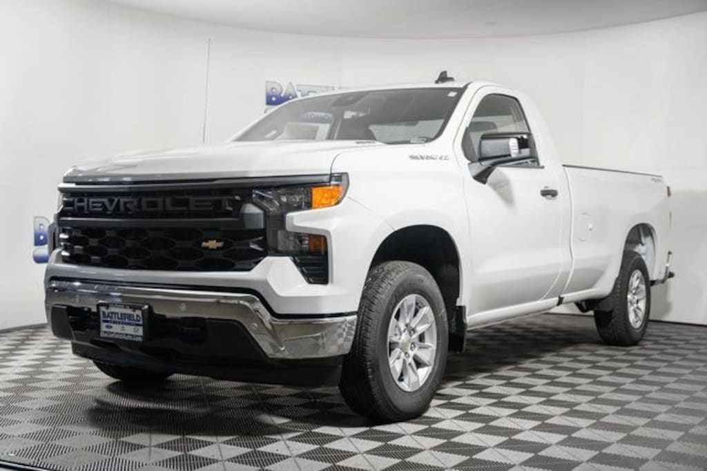 Summit White 2026 Chevrolet Silverado 1500 WT 4WD 8-Speed Automatic 2.7L I4 Turbocharged DOHC 16V LEV3-SULEV30 310hp 8-Speed Automatic, 4WD, Jet Black Vinyl, Deep-Tinted Glass, Electric Rear-Window Defogger, Front Chrome Bumper, High Gloss Black Mirror Caps, Hitch Guidance, Lane Change Alert with Side Blind Zone Alert, Perimeter Lighting, Rear Chrome Bumper, Rear Cross Traffic Braking, Rear Pedestrian Alert, Standard Suspension Package, Trailering Package, Ultrasonic Front and Rear Park Assist, WT Convenience Package, WT Safety Package, WT Value Package.